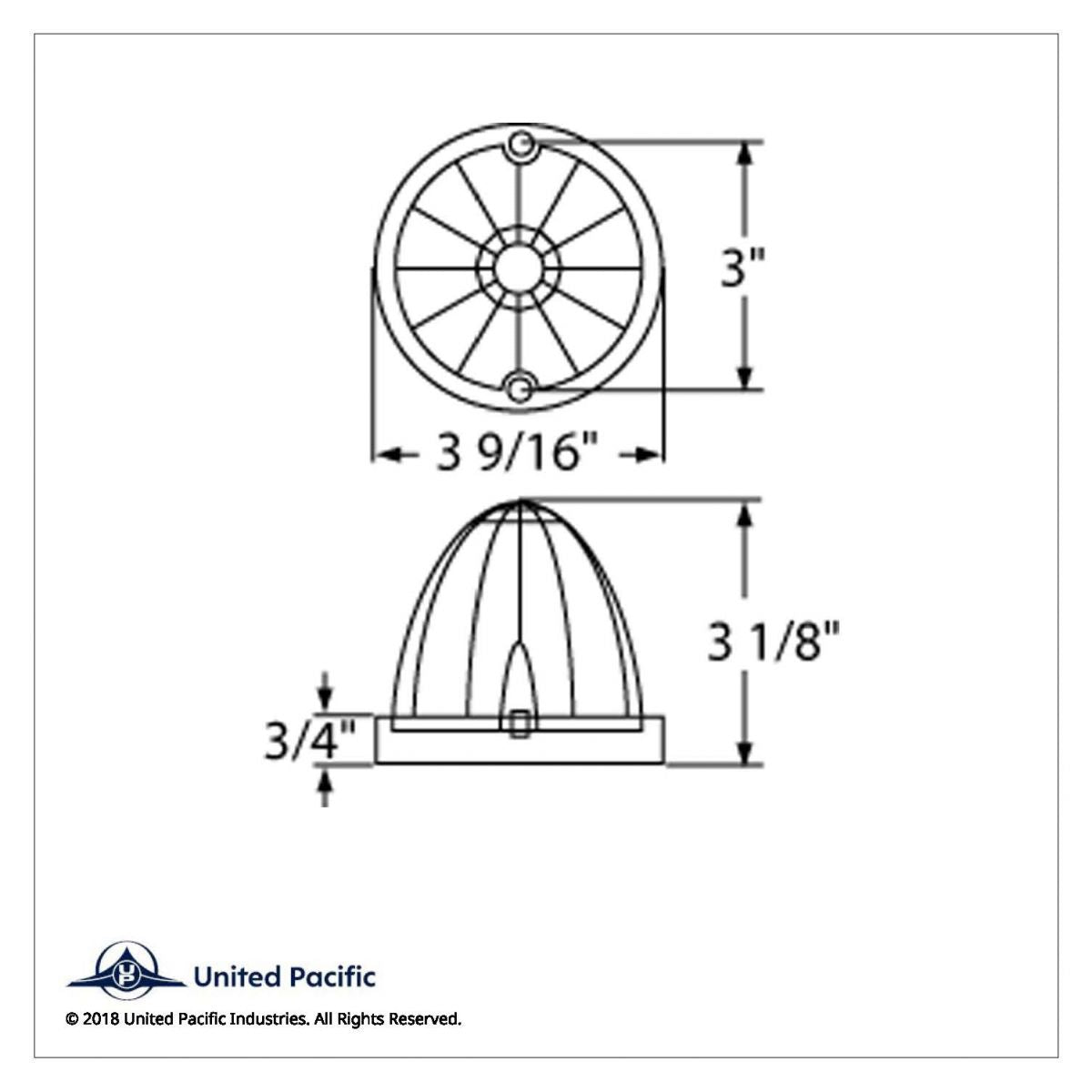 - Round cab light with 13 LED watermelon, truck-lite style lens.