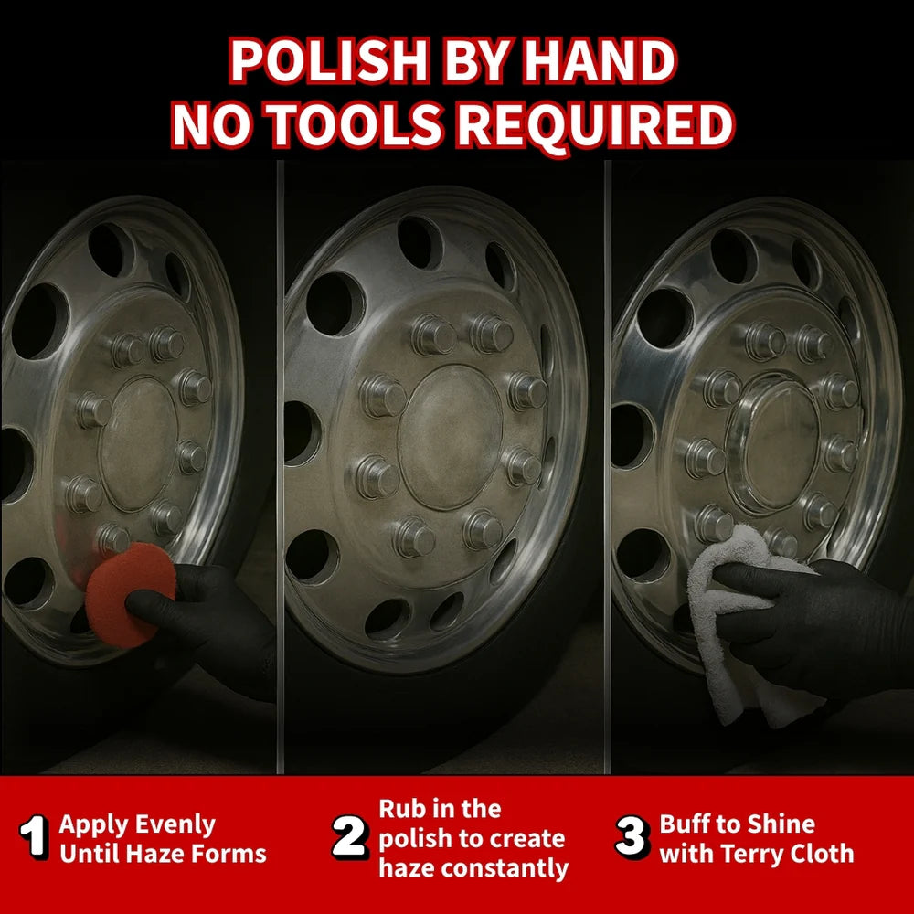 We recommend that you apply Renegade Red to your vehicle with a Premium Microfiber Round Pad to help reduce product waste. Continue the application process with even pressure until a dark haze starts to develop. To remove Renegade Red, we recommend using a cotton terry cloth towel to do a majority of the drying. Using a cotton terry cloth towel before switching to one of our Premium Microfiber Towels will help reduce the chances of any clumping of excess metal polish that may occur when only using microfiber towels.
